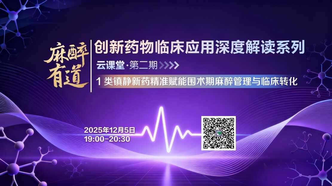 麻醉有道·创新药物临床应用深度解读系列 云课堂第一期:创新型镇静药物的简介以及临床研究进展(贺克强 教授)