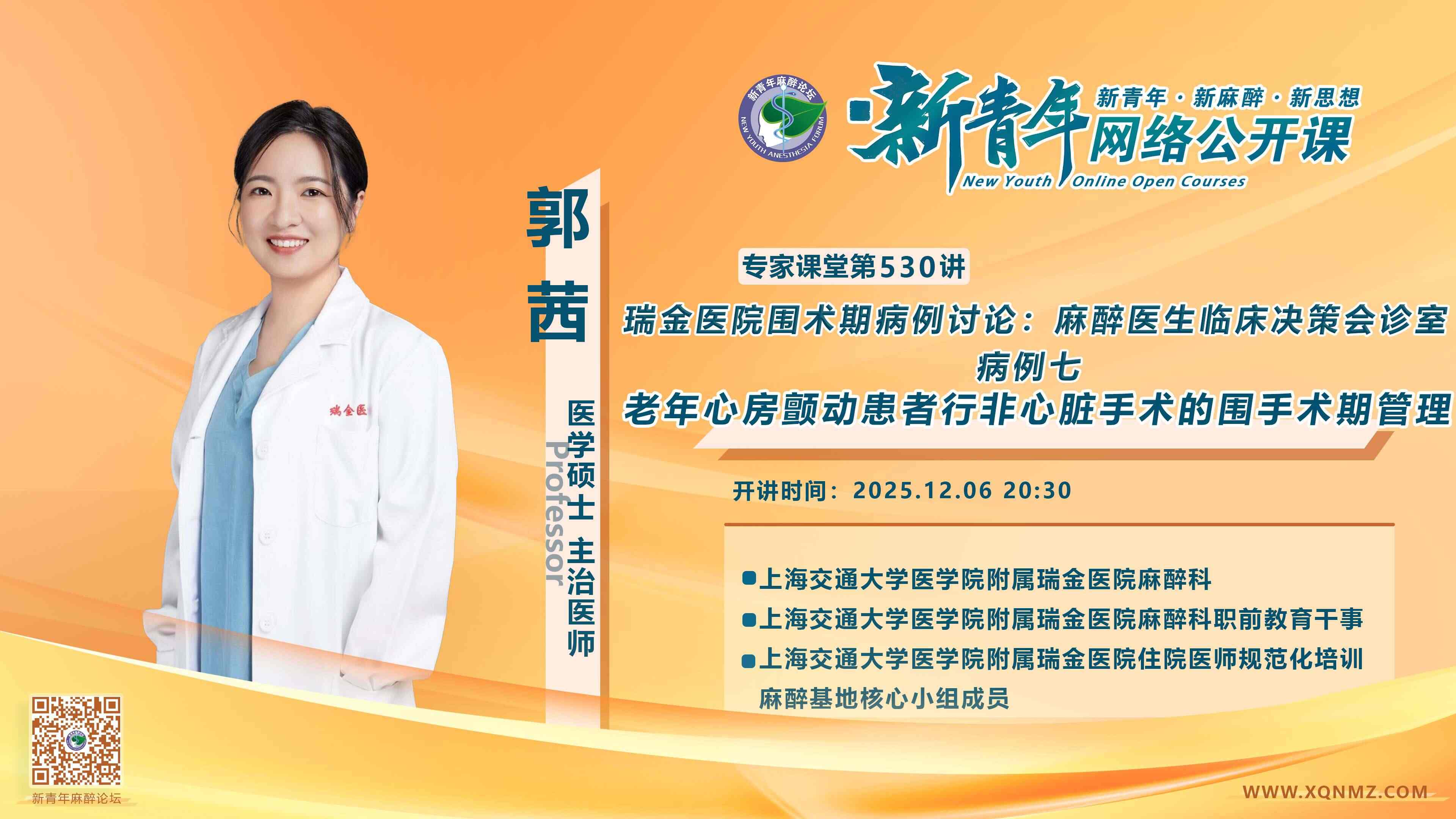 第530讲:瑞金医院围术期病例讨论--麻醉医生临床决策会诊室病例七:老年心房颤动患者行非心脏手术的围手术期管理 (郭 茜 主治医师)